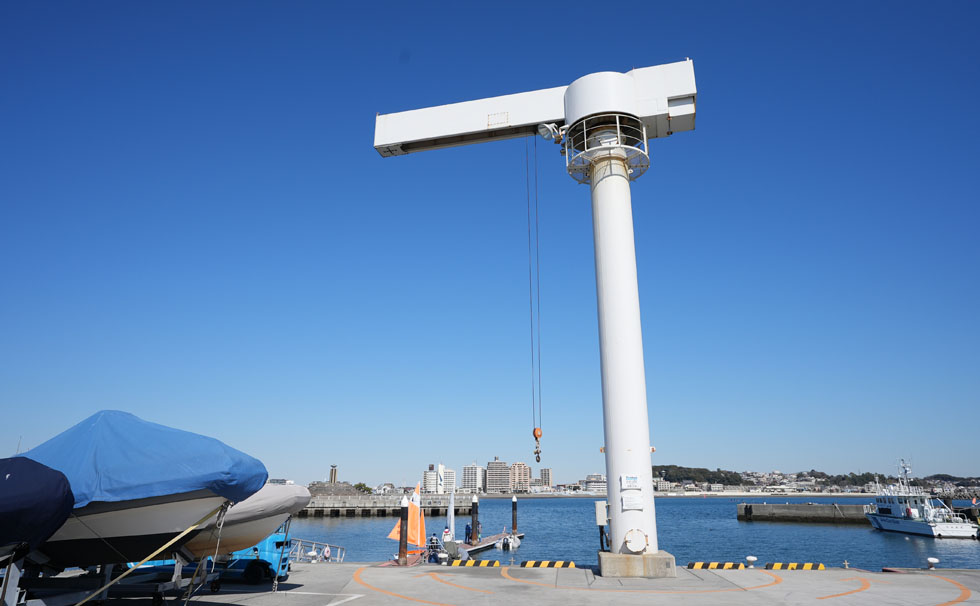 大型ディンギーなどの上下架用のクレーンを設置しています。マストの形状等によっては、吊上げのできない船舶もございます。事前にお問い合わせください。