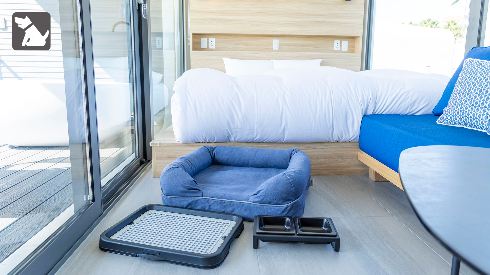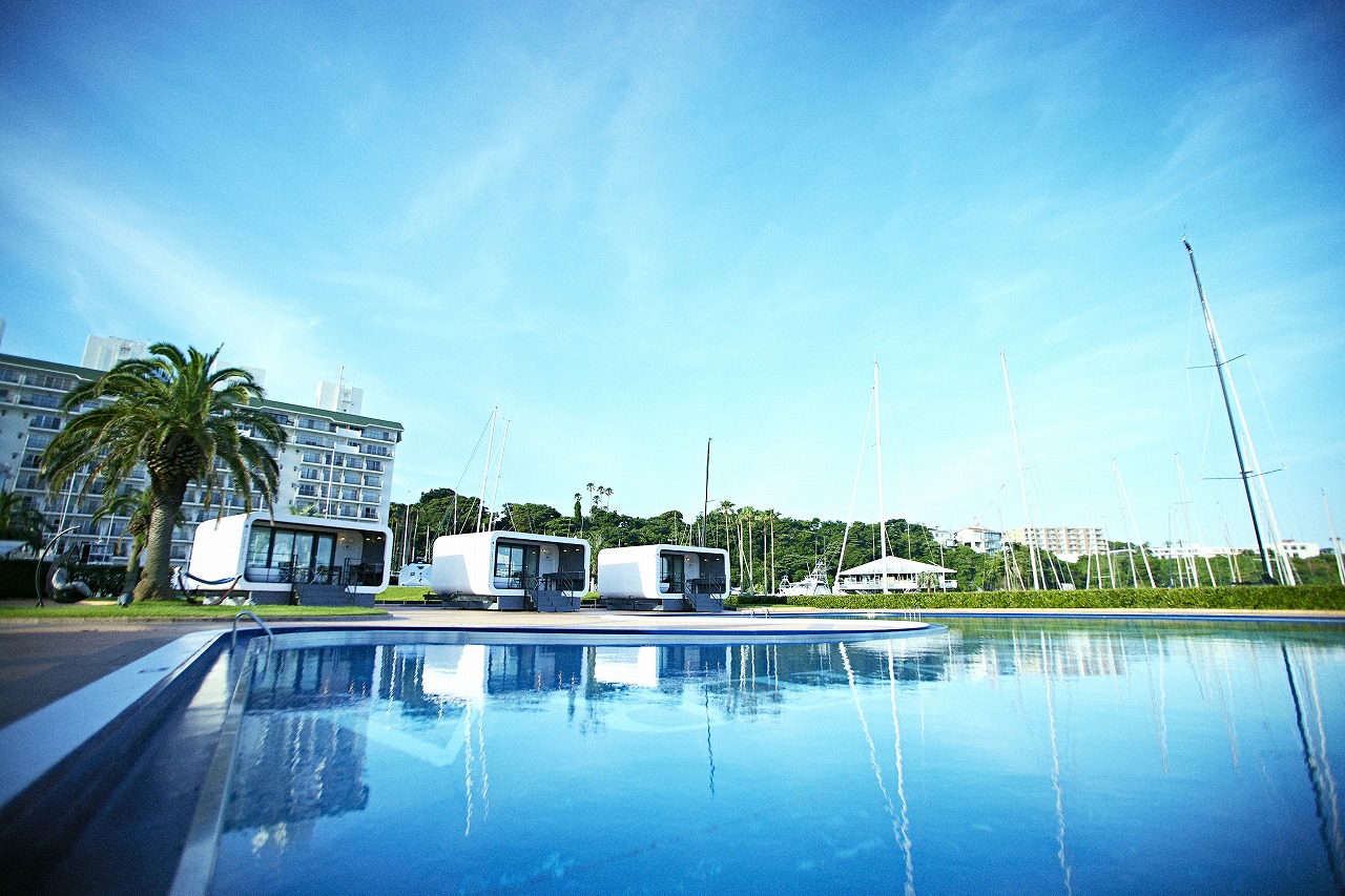 開放感ある一面のガラスに、そよぐ潮風を楽しむ広いテラスを有する客室は、オーシャンビューの好立地を存分に楽しむための日本初の新たなデザイン。