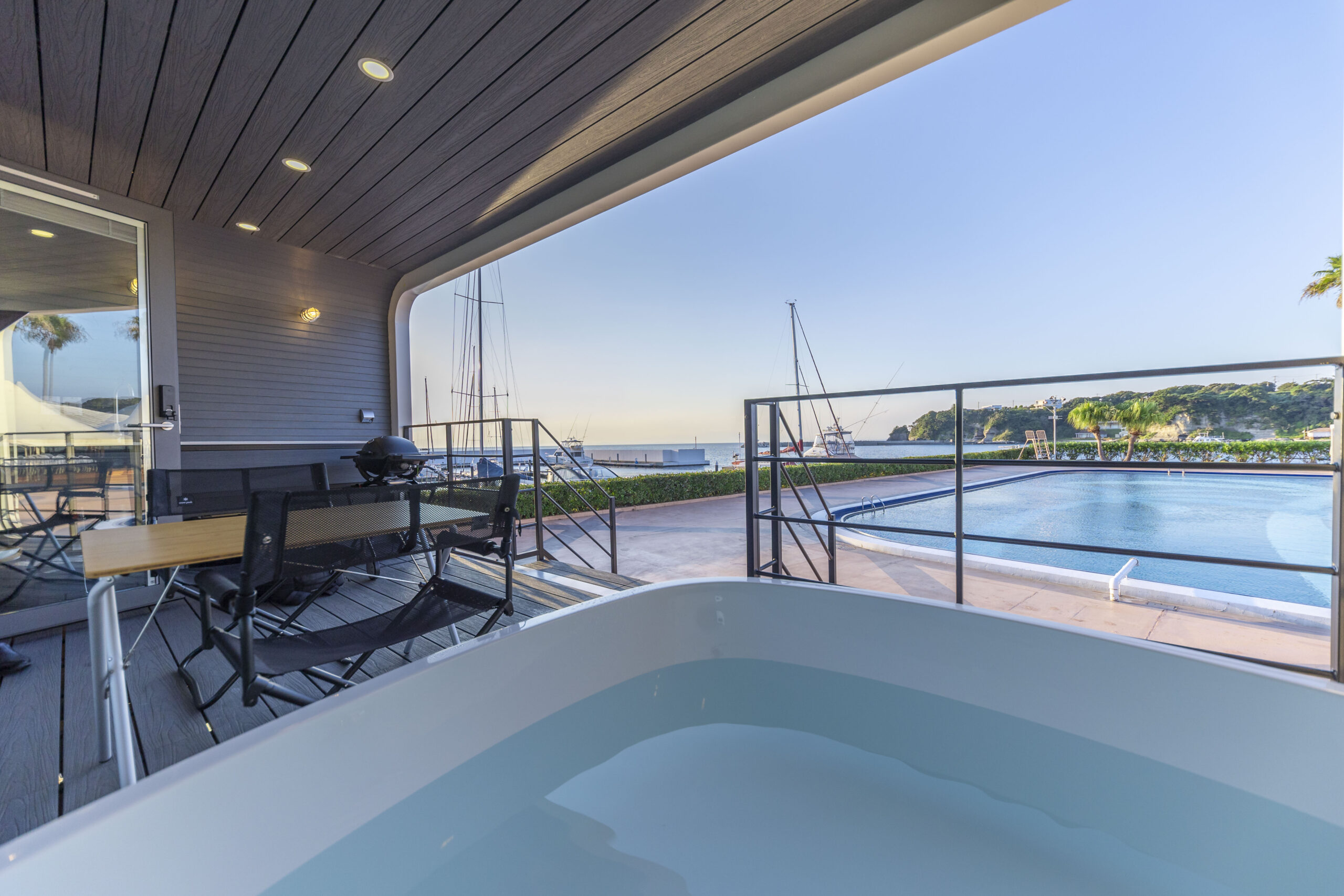ハーバーの向こう側に富士ビューを眺めることが出来るSPACEです。開放的なSPACEからは、大海原が絵画のように切り取られ、時間の経過とともに表情の変化を楽しむことができます。