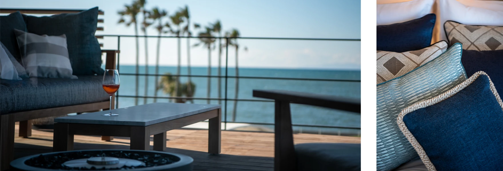 まっすぐに続いてゆく椰子並木と江の島や富士山まで望むハーバービューがゲストを別世界へと誘う