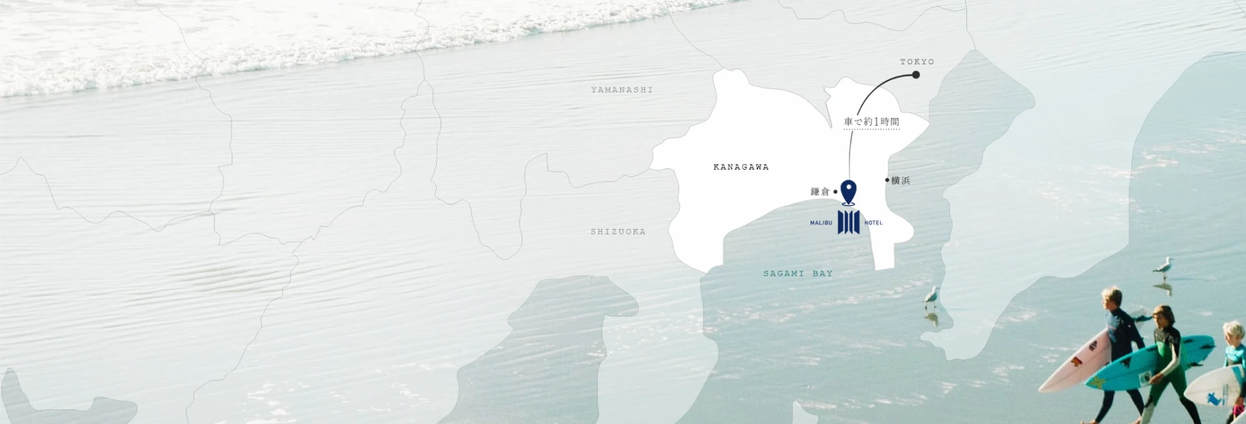 都心から約1時間 800年の歴史と文化を誇る古都鎌倉からも約10分のリビエラ逗子マリーナの一角に佇む極上のリゾートホテル。