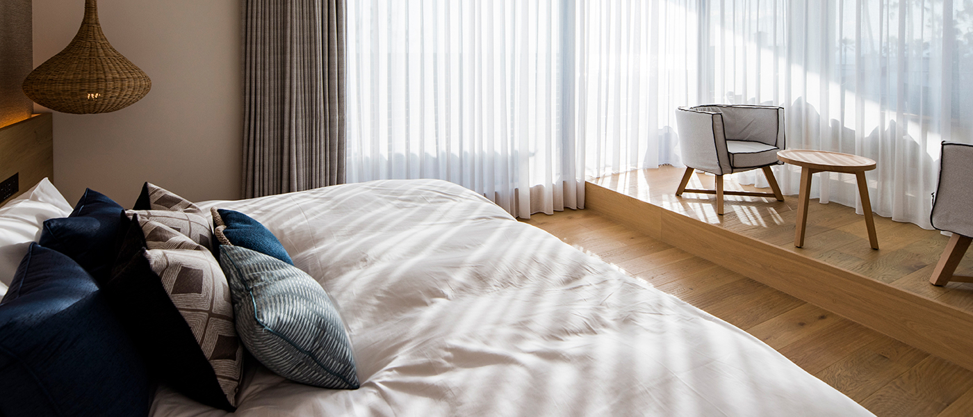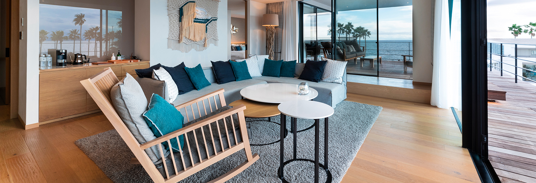 江の島や富士山まで望む美しいハーバービューを楽しめる、マリブホテルのシグネチャールーム「THE MALIBU SUITE」。