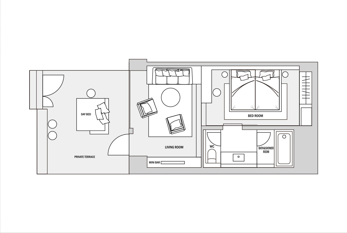 ウォーターテラスを見渡せる場所に位置し、専用のアプローチやガーデンを設えた「PRIVATE VILLA」。