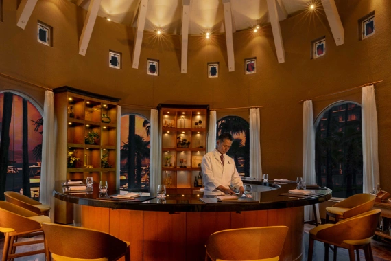 個室カウンターでシェフが目前で調理し、自らがもてなす特別なひとときを。シェフとの会話を楽しみながら、貸し切りでお食事をご堪能いただけます。