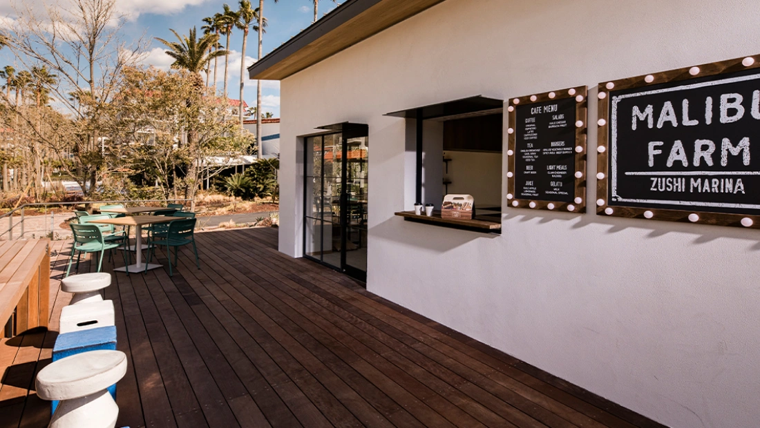 L.A.屈指の景勝地、マリブで絶大な人気を誇るセレブ御用達レストラン「MALIBU FARM」がリビエラ逗子マリーナに初上陸し、日本唯一の店舗です。