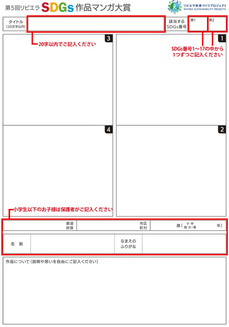 ※SDGs番号がマンガ応募用紙とWEB応募フォームと異なる場合、マンガ応募用紙に記載の番号を採用いたします。